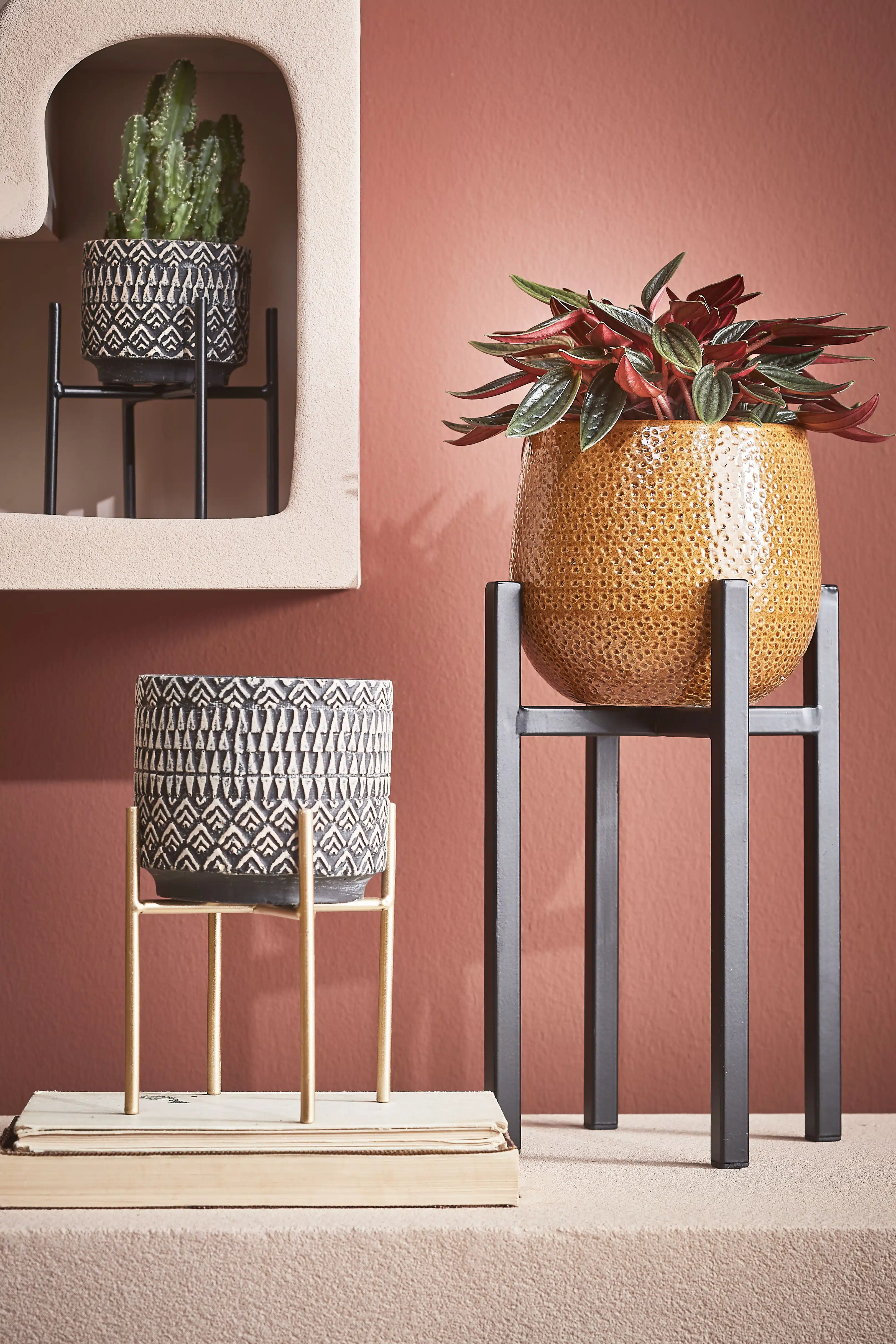 Zet jouw favoriete plant op een voetstuk met deze Ascot plantenstandaard van Mica Decorations. De standaard is gemaakt van metaal en uitgevoerd in een mooie gouden kleur. Dit in combinatie met het strakke design zorgt ervoor dat elke pot en plant goed tot zijn recht komen. Kies een pot, zet er een mooie plant in en maak het plaatje compleet! Leuk om los neer te zetten, of zet verschillende planten en standaards bij elkaar om een groene oase te creëren. De Ascot plantenstandaard is verkrijgbaar in verschillende kleuren en maten, zodat er voor iedere potmaat een passend model te vinden is. Deze standaard is goud heeft een afmeting van H12,5 x D11,5 cm. Geschikt voor een bloempot van maximaal D10 cm.