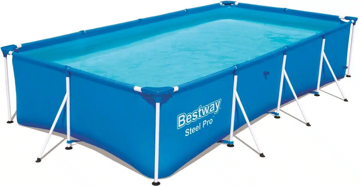 Het zwembad heeft een stalen frame en is hierdoor makkelijk in elkaar te zetten. Afmetingen: 400x211x81cm.