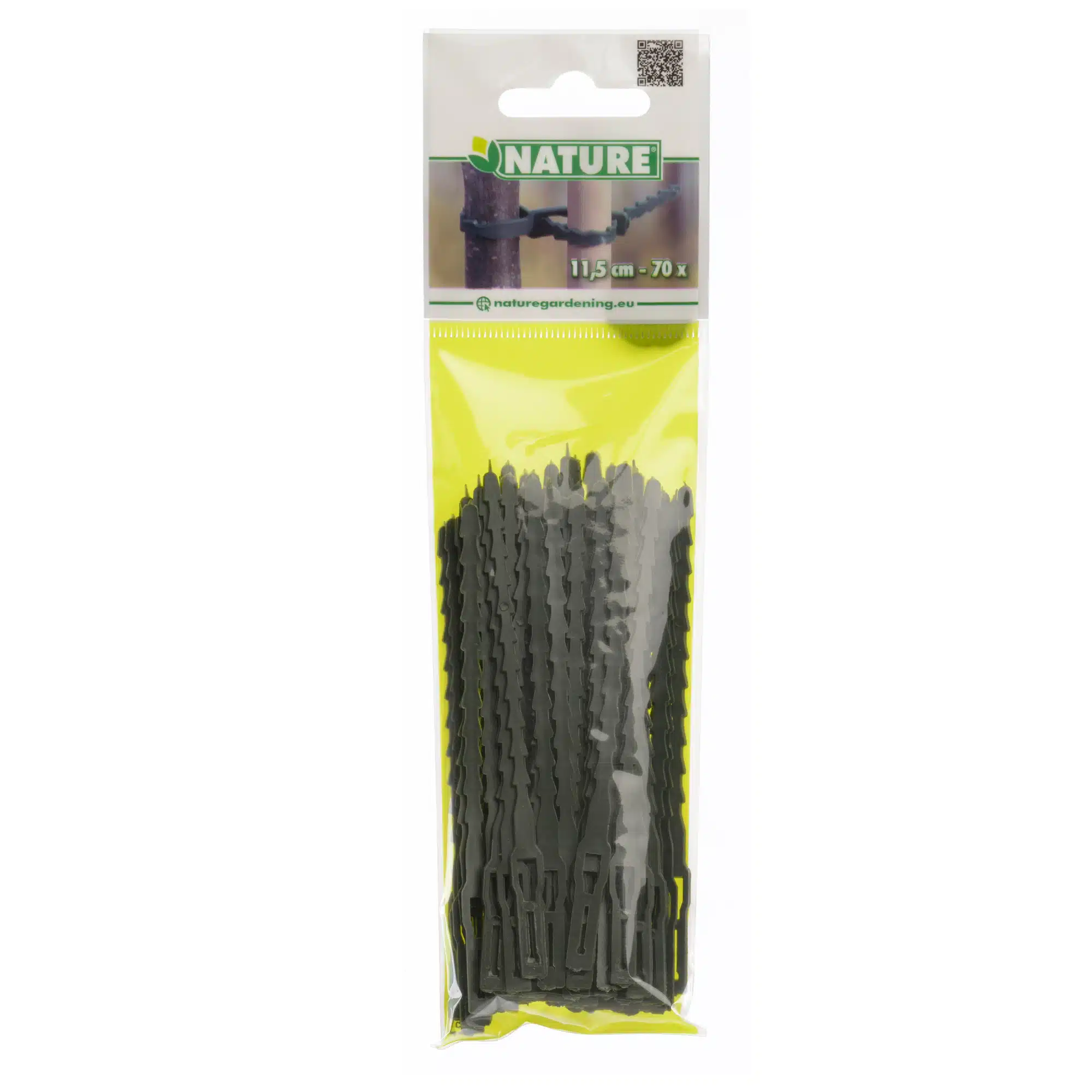 Dit universele, herbruikbare bindband van Nature is gemaakt van groen polypropyleen en heeft een rattenstaartsluiting. De verstelbare bindbanden hebben een afmeting van 11,5 cm en zijn verpakt per 70 stuks.