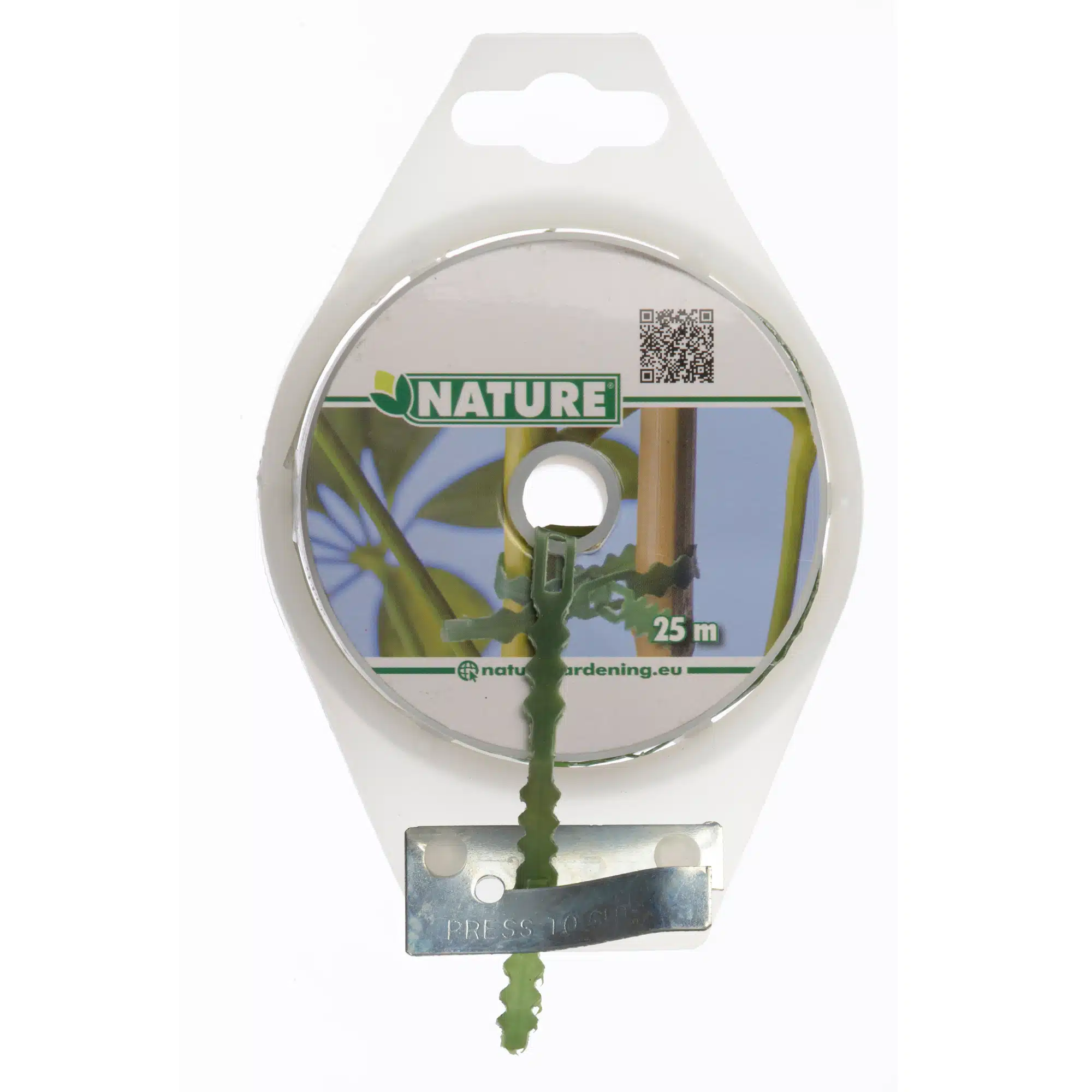Herbruikbaar bindband met rattenstaartsluiting van groen polyethyleen. Het Nature bindband multifunctioneel, eenvoudig in gebruik en weerbestendig. Lengte 25 m.