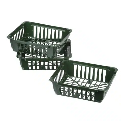 Set van drie rechthoekige mandjes van Nature, ideaal om de bloembollen te groeperen en samen te planten. Aan het einde van het seizoen kunnen de bloembollen opgegraven worden en binnen bewaard worden. De handige bollenplantmanden zijn gemaakt van duurzaam kunststof. H 7,5 x 25 x 21 cm, verpakt per 3 stuks.