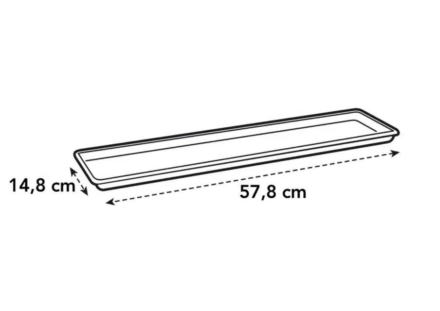Balkonschotel heeft afmetingen W60 x H2 x D15cm.
