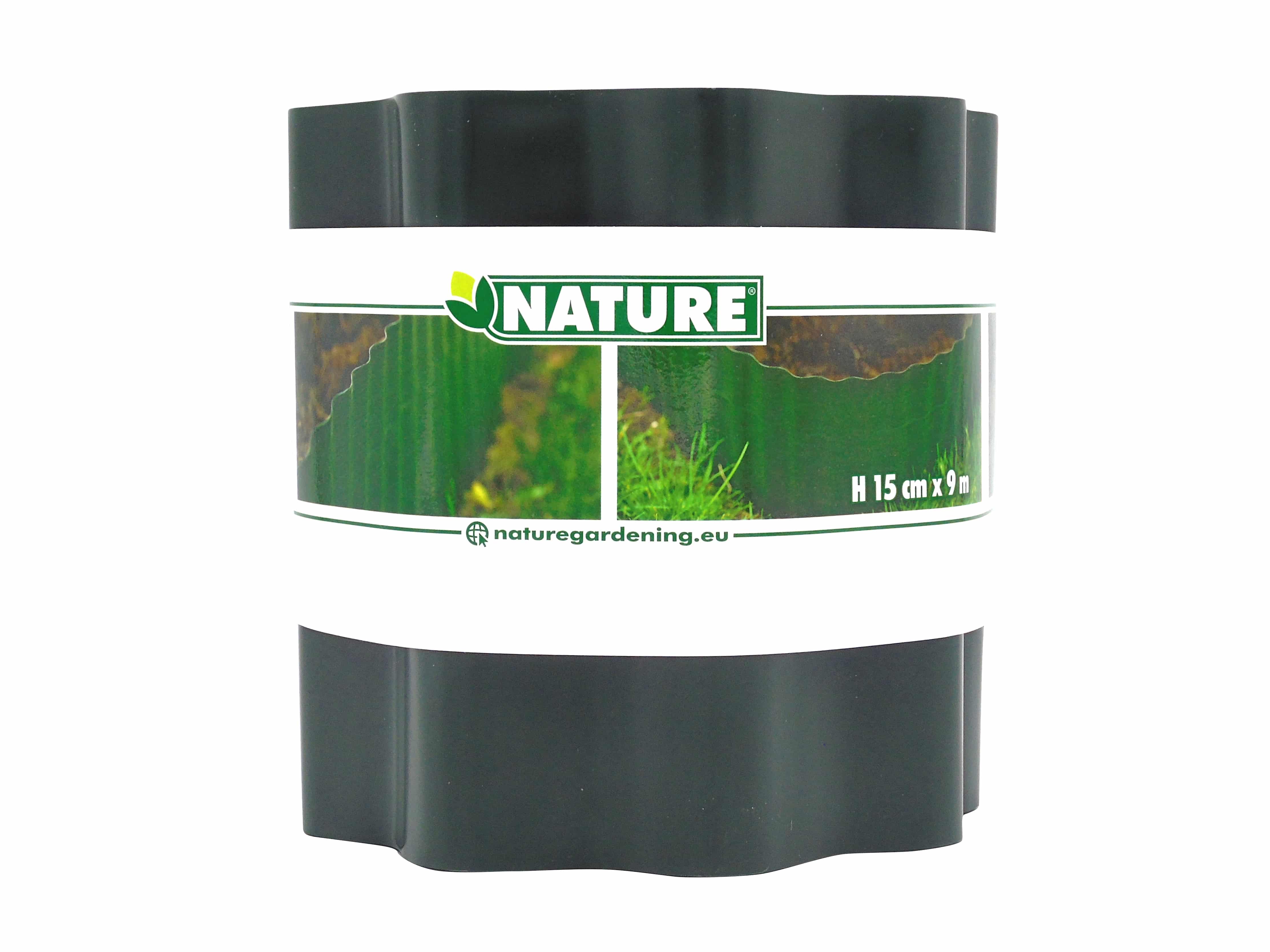 Deze gegolfde, groene grasrand van Nature is gemaakt van duurzaam kunststof. De eenvoudig te plaatsen grasrand is ideaal voor het begrenzen van planten en bloemperken. Afmeting H 15 cm x 9 m.