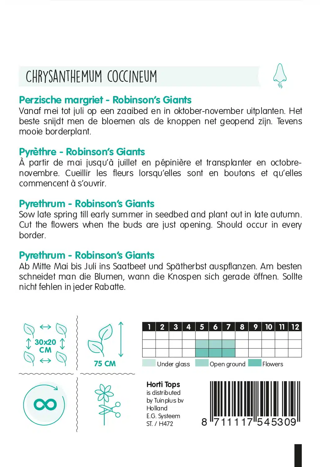 HT Chrysanthemum, Perzische margriet Robinson’s Giants