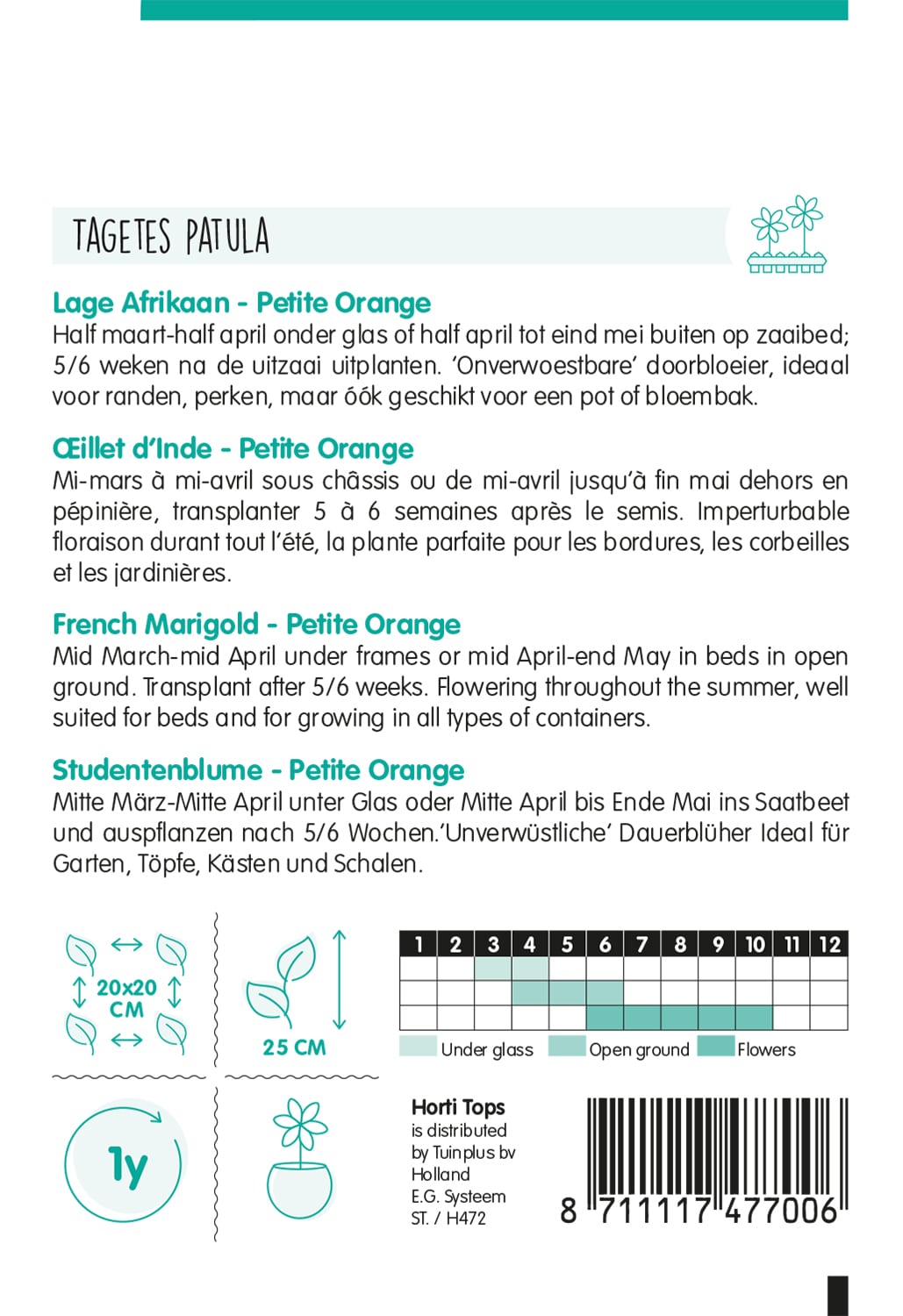 HT Tagetes, lage Afrikaan Petite Orange aantal