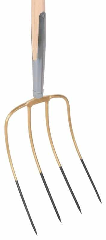 Deze mestvork is geschikt voor het verplaatsen van mest en tuinafval. De vork is voorzien van een 85cm steel. De steel is met een stift verbinding aan de vork gezet, daardoor is de vork sterk en toch niet zwaar. De vier dunne ovale tanden dringen makkelijk in de vaste mest zonder te breken of te buigen.