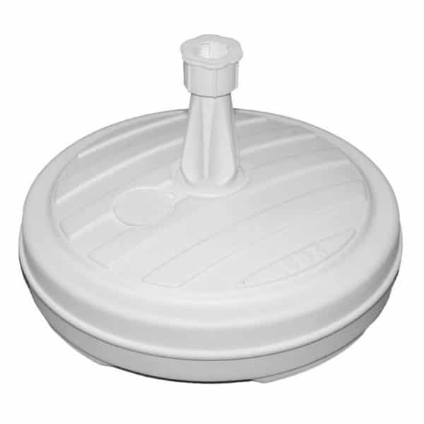 Handige parasolvoet van kunststof. Deze voet kunt u vullen met water of zand. Wanneer de voet is gevuld heeft hij een gewicht van 20-25 kg. De voet is alleen geschikt voor kleinere parasols met een diameter van 1.8-3.2 cm. De voet zelf heeft een diameter van 45cm.
