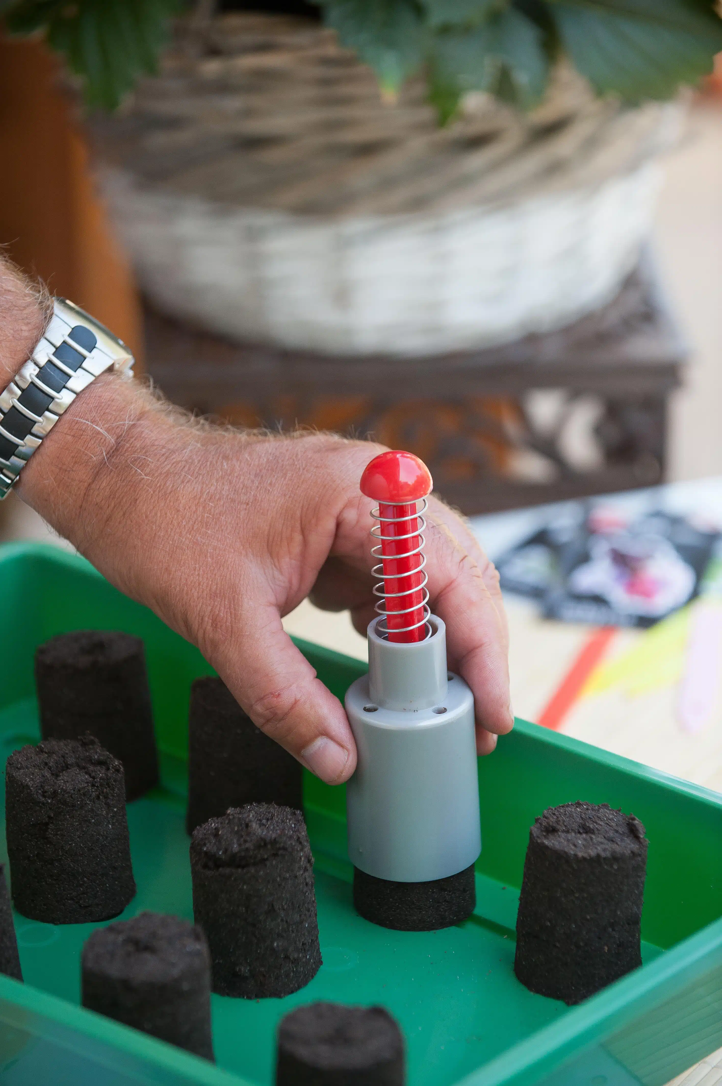Handige potpers van Nature voor het zelf maken van zaaikluitjes van vochtige pot- en tuingrond voor bijvoorbeeld een kweekbak. De ronde potpers is gemaakt van duurzaam kunststof en heeft een afmeting van H 15 x Ø 4,5 cm.