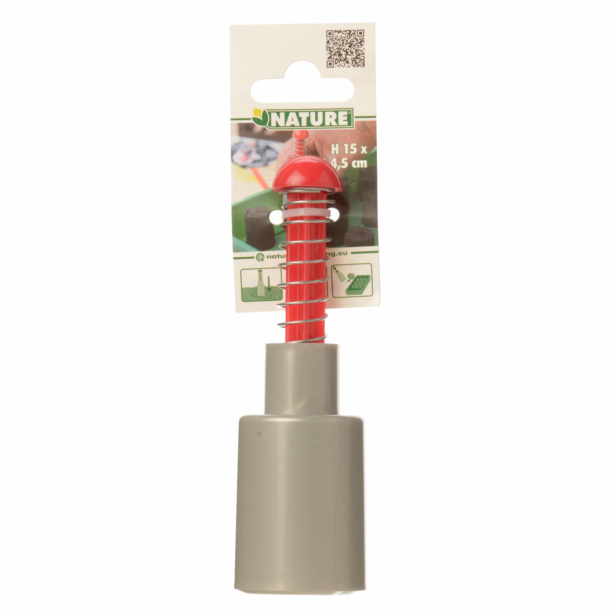 Handige potpers van Nature voor het zelf maken van zaaikluitjes van vochtige pot- en tuingrond voor bijvoorbeeld een kweekbak. De ronde potpers is gemaakt van duurzaam kunststof en heeft een afmeting van H 15 x Ø 4,5 cm.