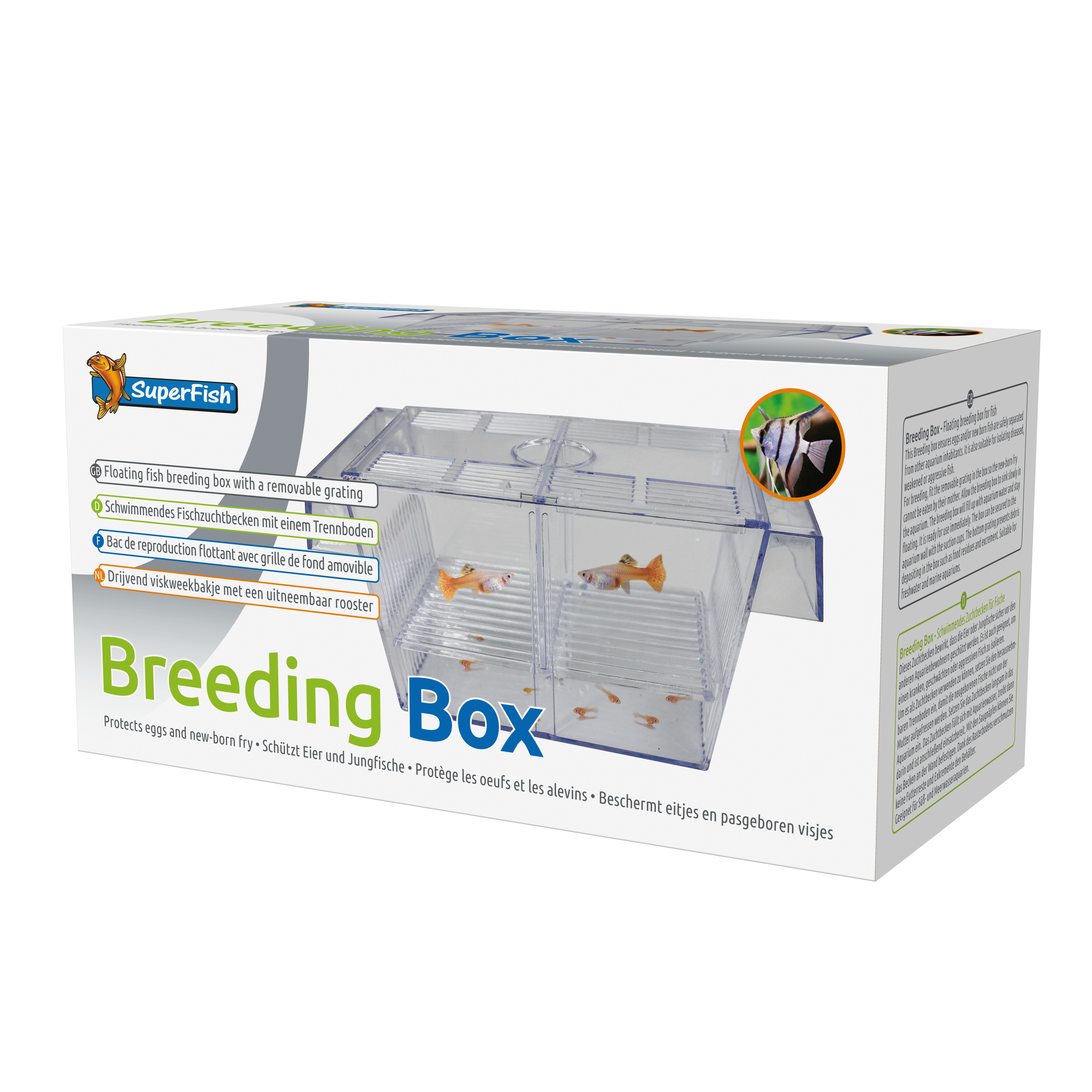 Kweekbakjes zorgen ervoor dat de eieren en/of pasgeboren visjes veilig gescheiden zijn van andere aquariumbewoners. Ook geschikt voor het isoleren van zieke, verzwakte of agressieve vissen. De Easy Breeding Box (1,2 liter en XL 2 liter) hangt aan de buitenkant van het aquarium. De andere Breeding Boxen worden in het aquarium geplaatst.